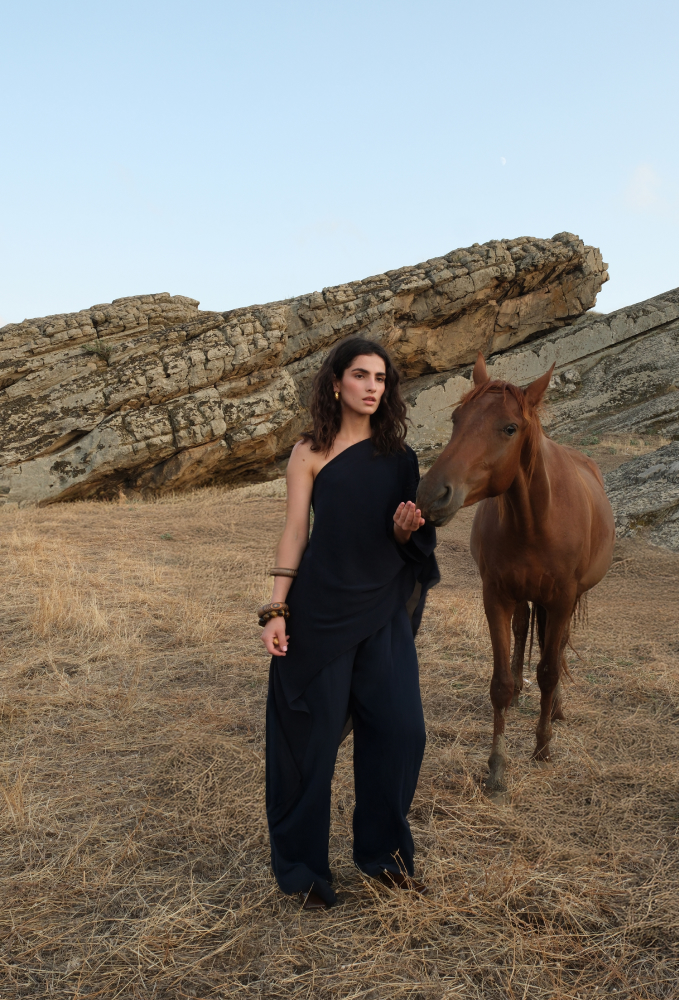 Ассиметричная блуза от TAMI GEE выполнена из натурального шелка и отличается свободным кроем на одно плечо. Застежка на ряд пуговиц сбоку. Легкая текстура шелка подчёркивает богатство материала и гармонично отражает философию бренда.