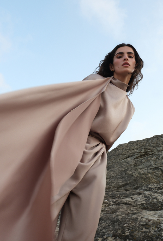 Брюки сложного кроя от TAMI GEE объединяют восточные мотивы и современный дизайн. Модель имеет драпировку на запах спереди, а также жёсткий пояс на обтачке. Потайная молния сбоку гарантирует удобную посадку, а отсутствие подкладки подчёркивает натуральную текстуру ткани.