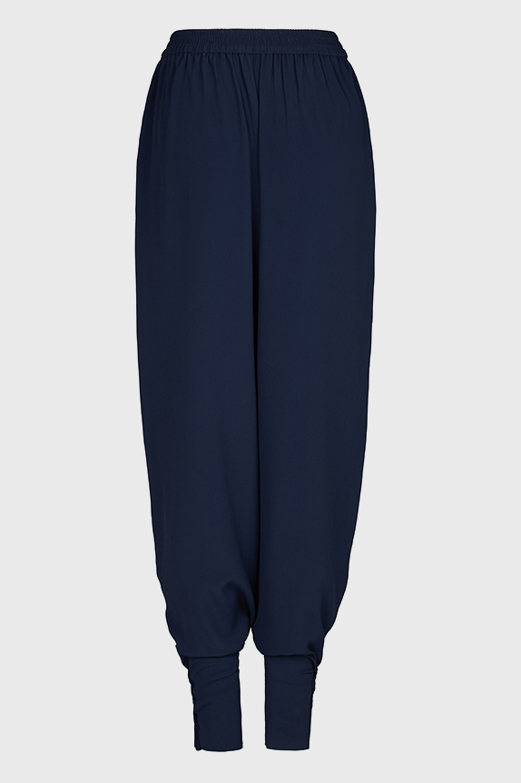 Широкие брюки-шаровары TAMI GEE из шелка. Благодаря составу материал изящно струится по телу. Спереди — складки, а понизу идут пуговицы, которые можно застегнуть для альтернативного варианта ношения, создавая дополнительный образ.