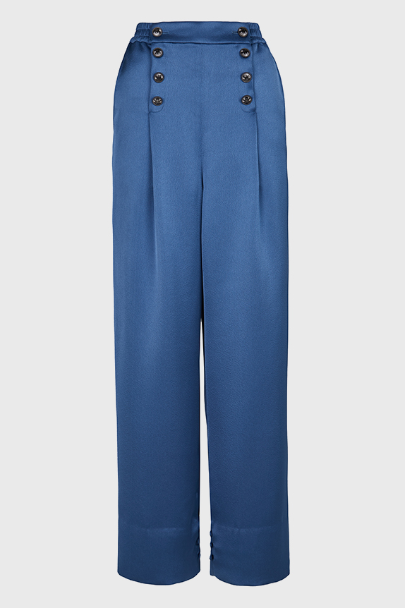 Широкие брюки-шаровары TAMI GEE. Благодаря составу материал изящно струится по телу. Спереди — складки, а понизу идут пуговицы, которые можно застегнуть для альтернативного варианта ношения, создавая дополнительный образ.