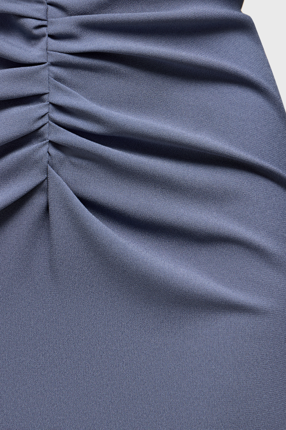 Элегантное платье длины миди от TAMI GEE в матовом оттенке, подчеркивающее фигуру. Облегающее по спине и бедрам с драпировкой по плечам, оно имеет высокий разрез и застежку на молнию сзади. Платье с высокой линией плеч идеально подходит для вечернего выхода.