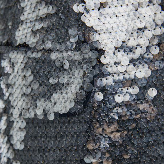 Жакет из пайеточной ткани полуприлегающего силуэта с прорезными карманами с клапанами. Застежка встык на крючках по центру переда создает изысканный вид. Английский отложной воротник. Подкладка из натурального шелка.