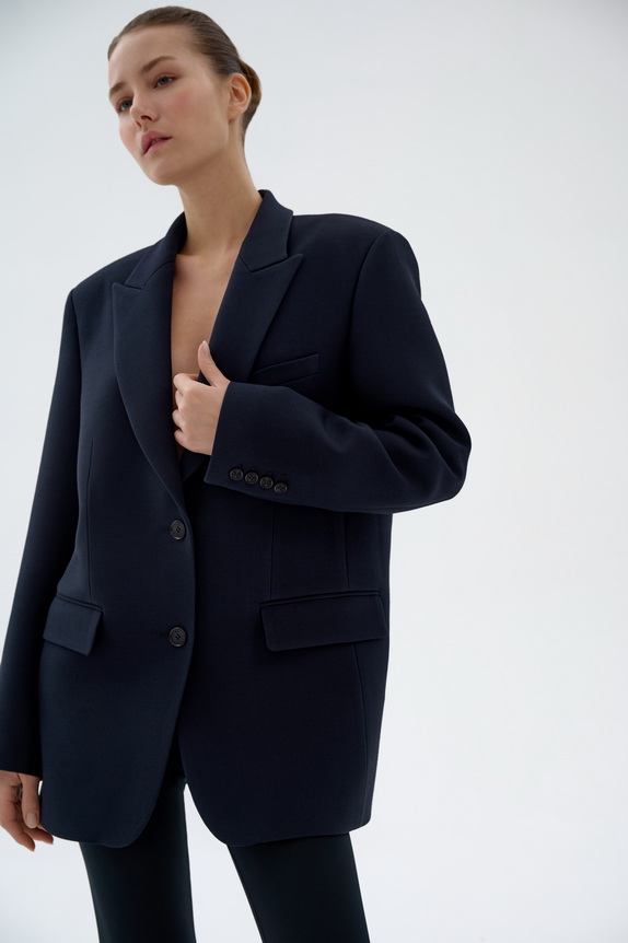 Обладательница безупречной версии однобортного пиджака в стиле oversize будет чувствовать себя уверенно и комфортно. Выполнен на основе шерсти и шёлка. Благородный чёрный цвет делает модель многозадачной. Пиджак буквально снят с мужского плеча с характерным объёмным прямым кроем, акцентированной линией плеч, длинными рукавами, шлицей сзади, листочкой, прорезными карманами с клапанами, лацканами и отложным воротником, застёжкой на пуговицы с выгравированным логотипом бренда. Параметры модели: 173/83/64/90 На модели размер: 42.
